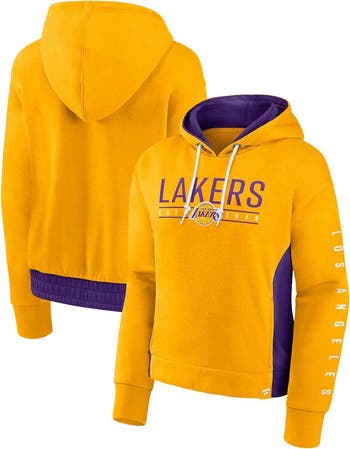 The Women's Fanatics Branded Gold Los Angeles Lakers Iconic Halftime Colorblock Pullover Hoodie is the perfect way to show your support for the Los Angeles Lakers. This midweight hoodie is made of a soft cotton and polyester blend, making it comfortable to wear all day long. The contrast-color hood lining and cropped hem give it a stylish look, while the front pouch pocket and drawstring hood provide added functionality. Whether you're cheering on the Lakers at the game or just relaxing at home, this hoodie is sure to keep you warm and comfortable.