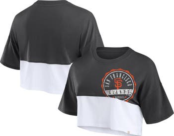 Add a colorful bit of San Francisco Giants flair to your game day getup in the form of this Color Split Boxy T-shirt from Fanatics Branded. It features a distinct San Francisco Giants graphic printed on the torso with distressed details that give this carefree option a bit of vintage flair. The two-toned colors make this top a fitting focal point in any laid-back ensemble, while the cropped hem keeps it fashion forward from the first inning to the last.
