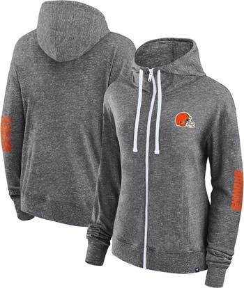 Celebrate your unwavering Cleveland Browns fandom with the Women's Fanatics Branded Heather Charcoal Cleveland Browns Opening Coin Flip Lightweight Full-Zip Hoodie. Perfect for mild temperatures, this lightweight sweatshirt proudly displays heat-sealed graphics that showcase your Browns allegiance. Two front pockets provide convenient storage for game day essentials, while the full-zip design allows for easy layering. Whether you're cheering from the stands or showing your support, this hoodie is the ultimate way to represent the Cleveland Browns.