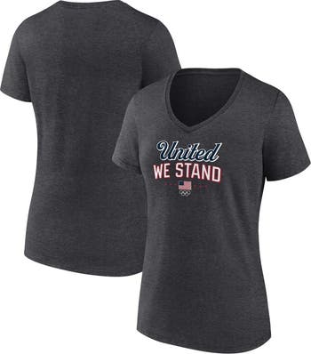 Celebrate your unwavering support for Team USA with the Women's Fanatics Branded Heather Charcoal Team USA Victory V-Neck T-Shirt. Its soft cotton fabric and comfortable V-neck design make it perfect for cheering on Team USA in style. The screen print graphics proudly display your allegiance, showcasing your dedication to the team and the Olympic spirit.