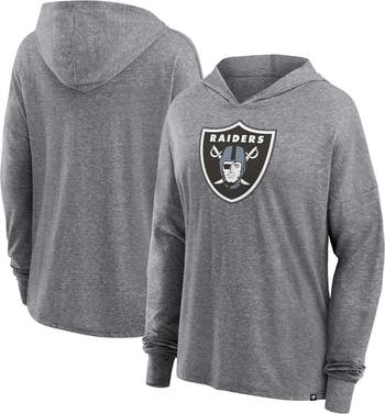 The Women's Fanatics Branded Heather Gray Las Vegas Raiders Cozy Primary Pullover Hoodie is the perfect way to show your support for the Las Vegas Raiders. Made from a soft and comfortable polyester and cotton blend, this hoodie features embroidered appliqu with screen print detail, a heathered fabric, and a rounded droptail hem. The lightweight design makes it perfect for mild temperatures, and the oversized fit ensures a comfortable and stylish look.