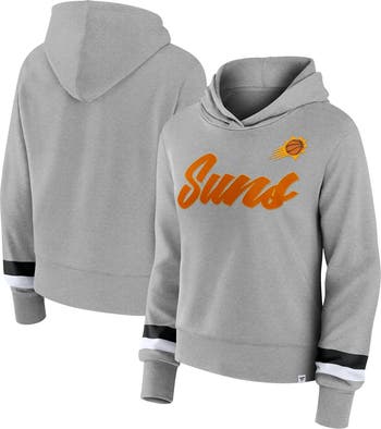 The Women's Fanatics Branded Heather Gray Phoenix Suns Halftime Pullover Hoodie is the perfect way to show your support for the Phoenix Suns. Made from a comfortable cotton and polyester blend, this midweight hoodie features contrast-color stripes and an embroidered fabric applique that proudly displays the Phoenix Suns logo. Screen print graphics add a touch of style, while the midweight design makes it suitable for moderate temperatures. Whether you're cheering on the Suns at the game or relaxing at home, this hoodie will keep you comfortable and stylish.