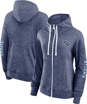 The Women's Fanatics Branded Heather Navy Tennessee Titans Opening Coin Flip Lightweight Full-Zip Hoodie is the perfect way to show your support for the Tennessee Titans. Made from a comfortable cotton and polyester blend, this lightweight hoodie is perfect for mild temperatures. Heat-sealed graphics and two front pockets add style and functionality. Whether you're cheering on the Titans at the stadium or relaxing at home, this hoodie will keep you comfortable and stylish.