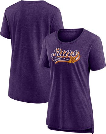 The Women's Fanatics Branded Heather Purple Phoenix Suns League Leader Tri-Blend T-Shirt is the perfect way to show your support for the Phoenix Suns. Made from a comfortable blend of polyester, cotton, and rayon, this tri-blend t-shirt features a droptail hem with side splits for a stylish and comfortable fit. The Phoenix Suns logo is proudly displayed on the front, so you can show your team spirit wherever you go.