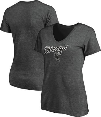 Celebrate your unwavering support for the Chicago White Sox with the Fanatics Branded Heathered Charcoal Chicago White Sox Team Logo Lockup V-Neck T-Shirt. This stylish tee features screen print graphics that proudly display the iconic Chicago White Sox logo, making it the perfect way to show your allegiance to the team. Crafted from a comfortable cotton and polyester blend, this V-neck T-shirt is perfect for game days or any day you want to represent the Chicago White Sox.