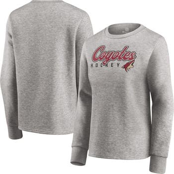 The Women's Fanatics Branded Heathered Gray Arizona Coyotes Fan Favorite Script Pullover Sweatshirt is the perfect way to show your support for the Arizona Coyotes. Made from a soft and comfortable cotton-polyester blend, this midweight sweatshirt features a fleece lining for added warmth during chilly game days. The pullover design makes it easy to layer up or down, while the Arizona Coyotes graphics proudly display your allegiance. Whether you're cheering from the stands or simply showing your support, this sweatshirt is the perfect way to represent the Arizona Coyotes in style.