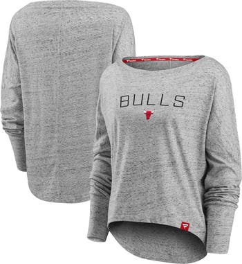 Women's Fanatics Branded Heathered Gray Chicago Bulls Nostalgia Off-The-Shoulder Long Sleeve T-Shirt