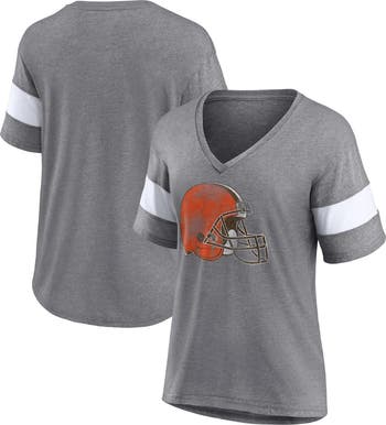 Women's Fanatics Branded Heathered Gray/White Cleveland Browns Distressed Team Tri-Blend V-Neck T-Shirt