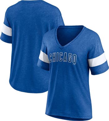 Women's Fanatics Branded Heathered Royal Chicago Cubs Wordmark V-Neck Tri-Blend T-Shirt