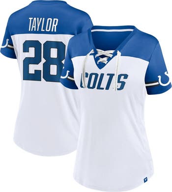 The Women's Fanatics Branded Jonathan Taylor White Indianapolis Colts Athena Name & Number V-Neck Top is the perfect way to show your support for the Indianapolis Colts. With its screen print graphics, lace-up details, and rounded hem, this top is both stylish and comfortable. Made from durable polyester, this top will last through many seasons of cheering on your favorite team. Whether you're at the game or just hanging out at home, this top is sure to show your Indianapolis Colts pride.
