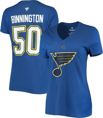 Your die-hard loyalty to the St. Louis Blues is unmatched by anyone. Now you can put your fandom over the top when you get this Jordan Binnington St. Louis Blues Team Authentic Stack Name and Number V-neck T-shirt. This Fanatics Branded tee features distinctive St. Louis Blues graphics on the front and back, perfect for wearing at a home game or around town.