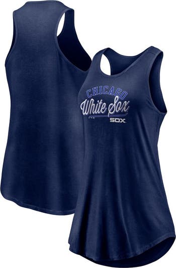 Celebrate your unwavering Chicago White Sox fandom with the Women's Fanatics Branded Navy Chicago White Sox Simplicity Swing Racerback Scoop Neck Tank Top. This stylish tank features a rounded droptail hem and scoop neck, providing both comfort and a flattering fit. Made from a soft rayon and spandex blend, it's perfect for cheering on the Chicago White Sox in style. Show your support for the South Side faithful with this officially licensed tank top, proudly displaying the iconic Chicago White Sox logo.