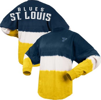 Celebrate your unwavering St. Louis Blues fandom with the Women's Fanatics Branded Navy/Gold St. Louis Blues Ombre Long Sleeve T-Shirt. This stylish tee features low-puff screen-print graphics and a crew-neck collar, proudly displaying your allegiance to the St. Louis Blues. The dropped shoulders, ribbed collar, and sleeve cuffs provide a comfortable fit, while the rounded hem adds a touch of flair. Whether you're cheering from the stands or simply showing your support, this long sleeve t-shirt is the perfect way to represent the St. Louis Blues in style.