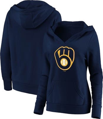 Your game day style can't be beat, but what do you do when it gets cooler outside? You grab this Milwaukee Brewers Official Logo crossover V-neck pullover hoodie from Fanatics Branded! Featuring bold Milwaukee Brewers graphics on the chest, you can rest easy knowing you'll be illustrating your fierce loyalty to the team, no matter the temperature.