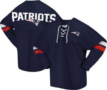 Women's Fanatics Branded Navy New England Patriots Spirit Jersey Lace-Up V-Neck Long Sleeve T-Shirt