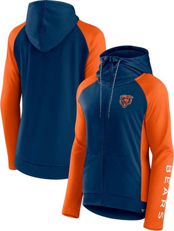 The Women's Fanatics Branded Navy/Orange Chicago Bears End Around Lightweight Raglan Full-Zip Hoodie Jacket is the perfect way to show your support for the Chicago Bears. Made of lightweight polyester, this hoodie is perfect for mild temperatures and features raglan sleeves for a comfortable fit. The rounded droptail hem and two front pockets add style and functionality, while the screen print graphics proudly display your Chicago Bears pride. Whether you're cheering on the Bears at the stadium or just relaxing at home, this hoodie is sure to keep you comfortable and stylish.