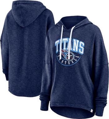 The Women's Fanatics Branded Navy Tennessee Titans Lightweight Modest Crop Lounge Helmet Arch Pullover Hoodie is the perfect way to show your support for the Tennessee Titans. Made from a soft and comfortable cotton-polyester blend, this hoodie features a lightweight design that's perfect for mild temperatures. The modest cropped length and rounded droptail hem give it a stylish and modern look, while the distressed screen print graphics add a touch of vintage flair. Whether you're cheering on the Titans at the stadium or just relaxing at home, this hoodie is sure to keep you comfortable and stylish.