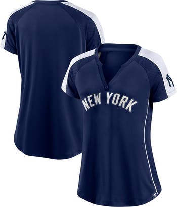 Women's Fanatics Branded Navy/White New York Yankees True Classic League Diva Pinstripe Raglan V-Neck T-Shirt