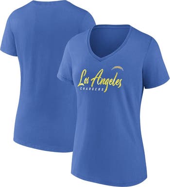 The Women's Fanatics Branded Powder Blue Los Angeles Chargers Shine Time V-Neck T-shirt is the perfect way to show your support for the Los Angeles Chargers. Made from soft cotton, this comfortable tee features screen-printed graphics that proudly display your team pride. Whether you're cheering from the stands or hanging out at home, this t-shirt is sure to become a favorite. Go Chargers!