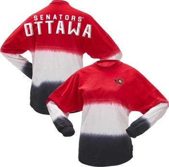 The Women's Fanatics Branded Red/Black Ottawa Senators Ombre Long Sleeve T-shirt is the perfect way to show your support for the Ottawa Senators. With its low-puff screen-print graphics and crew-neck collar, this shirt is both stylish and comfortable. Dropped shoulders, ribbed collar and sleeve cuffs add sophistication, while the rounded hem ensures a flattering fit. Made from soft cotton, this shirt is perfect for any occasion, whether you're cheering on the Senators at the game or relaxing at home.