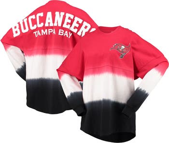 Celebrate your unwavering Tampa Bay Buccaneers fandom with the Women's Fanatics Branded Red/Black Tampa Bay Buccaneers Ombre Long Sleeve T-Shirt. This vibrant tee features a unique ombre design that varies on each shirt, making it a one-of-a-kind addition to your Buccaneers wardrobe. The low puff screen print graphics and crew neck provide a comfortable and stylish fit, perfect for cheering on your team at the stadium or showing your support wherever you go.