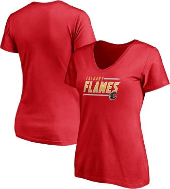 Women's Fanatics Branded Red Calgary Flames Plus Size Mascot In Bounds V-Neck T-Shirt