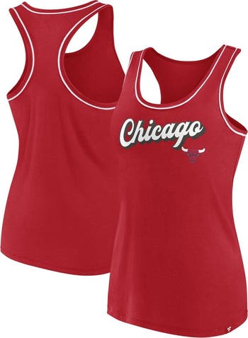 The Women's Fanatics Branded Red Chicago Bulls Wordmark Logo Racerback Tank Top is the perfect way to show your support for the Chicago Bulls. Made from soft cotton, this tank top features a scoop neck and screen-printed graphics of the iconic Chicago Bulls wordmark logo. Whether you're cheering on the Bulls at the United Center or just showing your team spirit around town, this tank top is sure to turn heads.