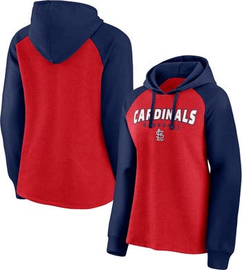 The Women's Fanatics Branded Red/Navy St. Louis Cardinals Recharged Raglan Pullover Hoodie is the perfect way to show your support for the St. Louis Cardinals. Made from a soft cotton and polyester blend, this lightweight hoodie is perfect for mild temperatures. The raglan sleeves and drawstring hood provide a comfortable and stylish fit, while the screen-printed graphics proudly display your Cardinals pride. Whether you're cheering on the Cardinals at the stadium or relaxing at home, this hoodie is sure to keep you warm and comfortable.