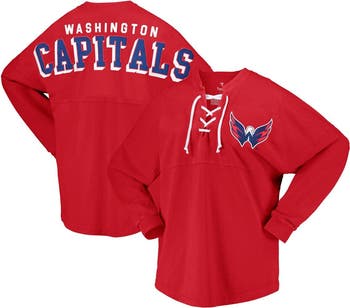 Women's Fanatics Branded Red Washington Capitals Spirit Lace-Up V-Neck Long Sleeve Jersey T-Shirt