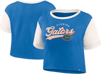 The Women's Fanatics Branded Royal Florida Gators Color-Block Script Tail T-shirt is the perfect way to show your support for the Florida Gators. Made from a comfortable cotton and polyester blend, this T-shirt features a crew neck and screen-printed graphics that proudly display your Gators pride. The length hits at the waist, making it perfect for pairing with your favorite jeans or shorts. Whether you're cheering on the Gators at the stadium or just showing your support around town, this T-shirt is sure to become a favorite.