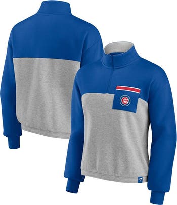 Display your Chicago Cubs spirit in an original fashion with this Fanatics Branded Iconic quarter-zip top. The cinched waist adds a unique touch to the bold Chicago Cubs colors and graphics. Dropped shoulders provide a little extra room, while the mock neck offers coverage.