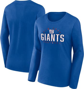 Celebrate your unwavering New York Giants fandom with the Women's Fanatics Branded Royal New York Giants Plus Size Foiled Play Long Sleeve T-Shirt. This stylish tee features screen-printed graphics that proudly display your allegiance to the New York Giants, making it the perfect way to show your support for your favorite NFL team. Whether you're cheering from the stands or simply showing your Giants pride, this long-sleeve t-shirt is a must-have for any dedicated fan.