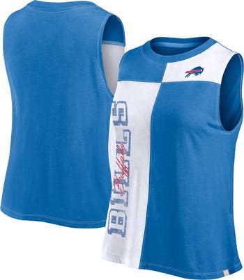 The Women's Fanatics Branded Royal/White Buffalo Bills Script Color Block Tank Top is the perfect way to show your unwavering support for the Buffalo Bills. With its heat-sealed and distressed screen print graphics, this tank top is sure to turn heads. The contrast color stitching adds a touch of style, while the cotton and polyester blend ensures comfort and durability. Whether you're cheering on the Bills from the stands or just relaxing at home, this tank top is a must-have for any true fan.