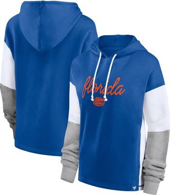 Represent your beloved Florida Gators in style with the Fanatics Branded Royal/White Florida Gators Play It Safe Colorblock Pullover Hoodie. This midweight hoodie is perfect for mild temperatures, featuring a cozy fleece lining and a comfortable pullover design. The vibrant colorblock design and bold Florida Gators graphics proudly display your unwavering support for the team. Whether you're cheering from the stands or simply showing your Gator pride, this hoodie is the perfect way to represent your favorite college team.