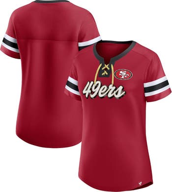 Gear up in San Francisco 49ers style with this Original State T-shirt. It features a unique lace-up neck and sewn-on stripes for added detail. The sleek team graphics across the front make this Fanatics Branded tee a must-have for any San Francisco 49ers game.