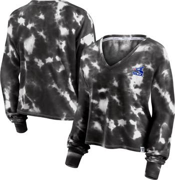 Celebrate your unwavering Chicago White Sox fandom with the Fanatics Branded White/Black Chicago White Sox Tie-Dye V-Neck Pullover Cropped Tee. This stylish tee features a unique tie-dye design that will make you stand out from the crowd, while the screen-printed graphics proudly display your Chicago White Sox pride. Made from a comfortable cotton and polyester blend, this cropped tee is perfect for game day or any day you want to show your support for the Chicago White Sox.
