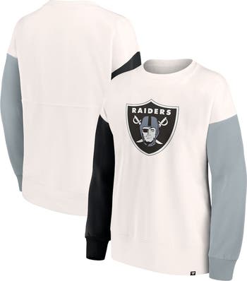 The Women's Fanatics Branded White Las Vegas Raiders Colorblock Primary Logo Pullover Sweatshirt is the perfect way to show unwavering support for the Las Vegas Raiders. Made from a comfortable cotton and polyester blend, this midweight sweatshirt features a bold colorblock design and screen-printed graphics that proudly display the Raiders' iconic logo. Whether cheering from the stands or showcasing team spirit, this sweatshirt is a must-have for any Las Vegas Raiders fan.