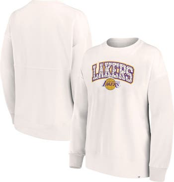 Women's Fanatics Branded White Los Angeles Lakers Tonal Leopard Pullover Sweatshirt