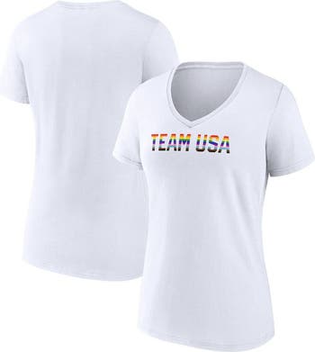 Women's Fanatics Branded White Team USA Pride Striped V-Neck T-Shirt