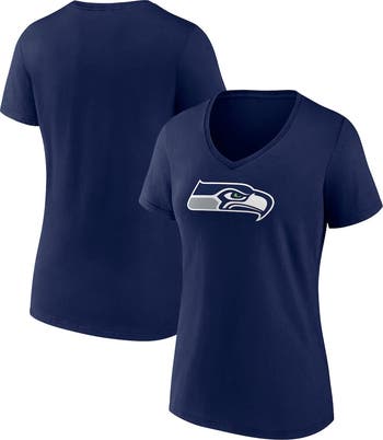 Women's Fanatics College Navy Seattle Seahawks Icon Primary Logo V-Neck T-Shirt