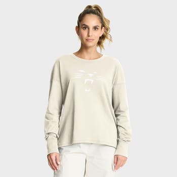 Cheer on the Carolina Panthers in chic comfort with this Dove Legacy Long Sleeve T-Shirt by Fanatics. Its relaxed fit, dropped shoulders and droptail hem provide a comfortable feel all day. The large Carolina Panthers logo ensures your team pride is on display.