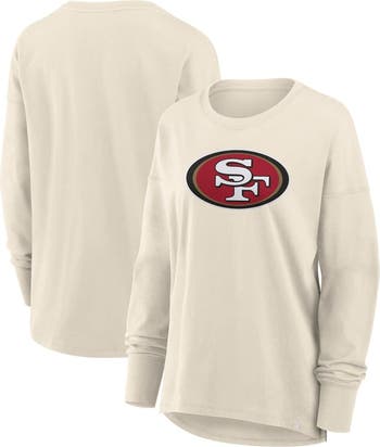 Show off your timeless San Francisco 49ers pride with this Dove Legacy Long Sleeve T-Shirt from Fanatics. The classic fit drapes comfortably, while the dropped shoulders provide a roomier feel. With screen print graphics and a droptail hem with side splits, this long-sleeve tee is perfect for displaying your San Francisco 49ers fandom in style.