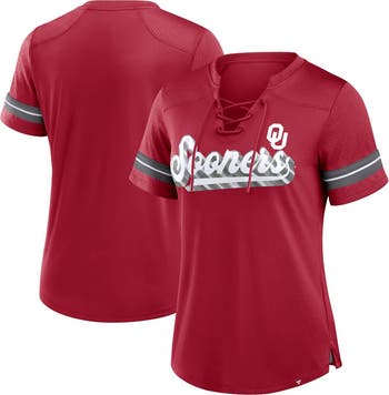 FANATICS Women's Fanatics Crimson Oklahoma Sooners Fundamental Overtime Readiness Athena Lace-Up V-Neck T-Shirt, Alternate, color, Crimson