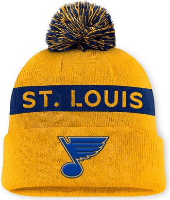 Match your favorite St. Louis Blues players when they hit the road with this Authentic Pro Rink Cuffed Knit Hat with Pom. This Fanatics gear features embroidered team graphics and a classic cuffed design. Stay warm in team style with this sleek St. Louis Blues cap.