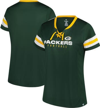Add some sparkle to your game day fit with this Green Bay Packers Plus Size Rhinestone Redzone Athena Lace-Up Notch Neck T-Shirt from Fanatics. Mesh sleeve and side seam insets add a touch of breathability, while the side splits at the bottom hem offer a comfortable and flattering fit. The screen-printed graphics are adorned with rhinestone accents, adding a touch of glam to your Green Bay Packers fandom.