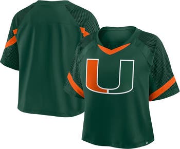 Fanatics merges fashionable comfort and Miami Hurricanes fandom with this Oversized Raglan V-Neck Fashion Jersey. The oversized silhouette and stretch jersey fabric create a roomy fit that moves with you, while mesh raglan sleeves provide optimum breathability. Contrast-color trim accentuates the Miami Hurricanes logo printed on the front and your team spirit.