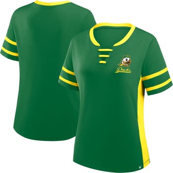 Cheer on the Oregon Ducks in trendy apparel with this Be Fearless Athena Lace-Up T-Shirt by Fanatics. Stretch jersey fabric provides a lightweight feel, while the classic fit creates a flattering silhouette. Rubberized team details and a faux lace-up neckline add stylish touches to this comfortable Oregon Ducks tee.