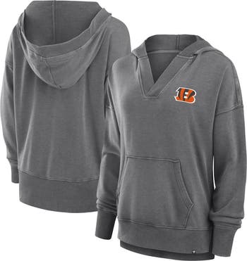 Women's Fanatics Heather Charcoal Cincinnati Bengals Initiative Snow Wash French Terry V-Neck Pullover Hoodie