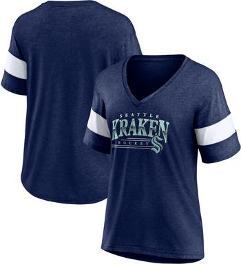 Be ready to see your favorites carve up the ice in style with this Seattle Kraken Clapper T-Shirt from Fanatics. The distressed details give this tee a vintage look that's both stylish and timeless, while the V-neckline offers keeps things flattering. The soft, breathable cotton fabric will keep you feeling cool and comfortable all day long.