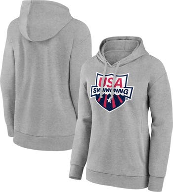 Women's Fanatics Heather Gray USA Swimming Logo Pullover Hoodie